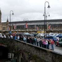 The queues build up outside the Brunel Passenger Shed. |