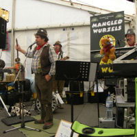 Mangledwurzels chatting up celebrity chef Lesley Waters